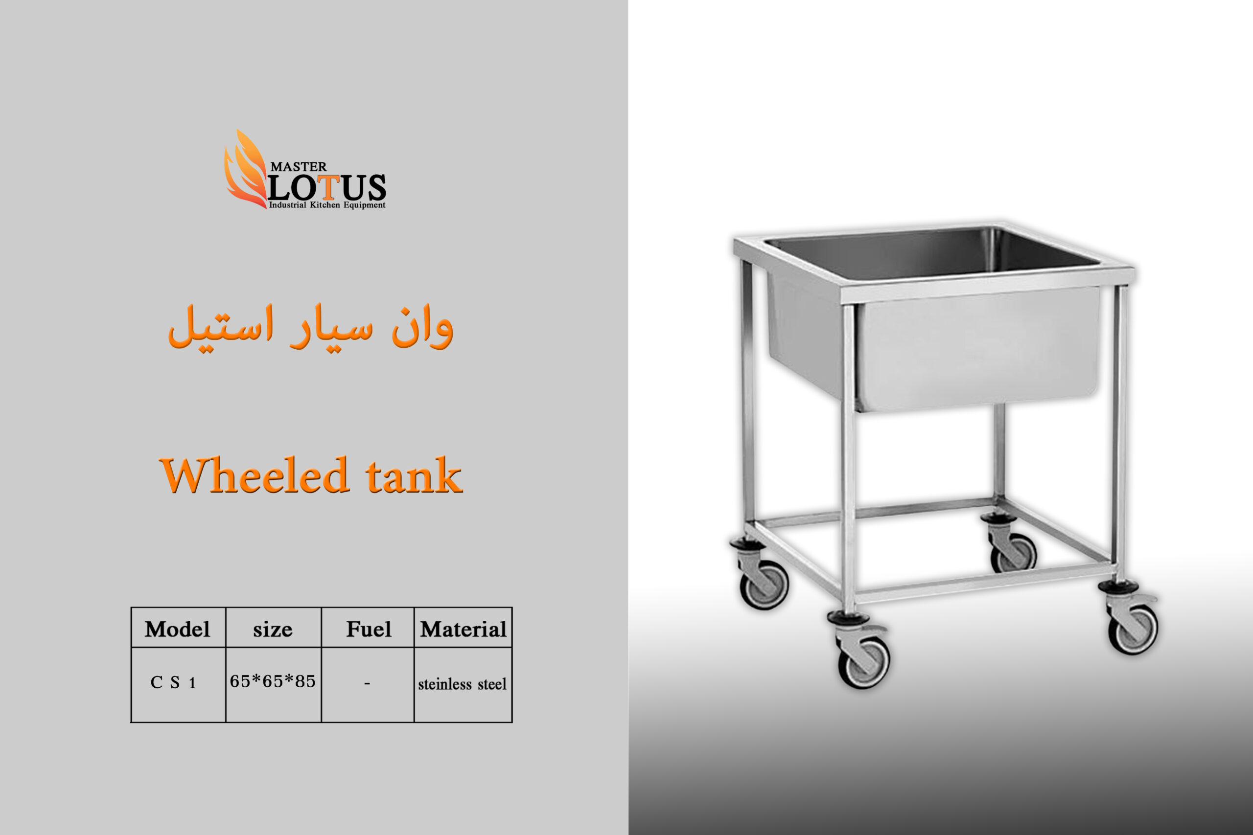 وان سیار استیل از ملزومات آشپزخانه های صنعتی از جنس استیل بوده که بیشتر جهت شستن و جا به جایی فله ای مواد غذایی مورد استفاده قرار می گیرد.